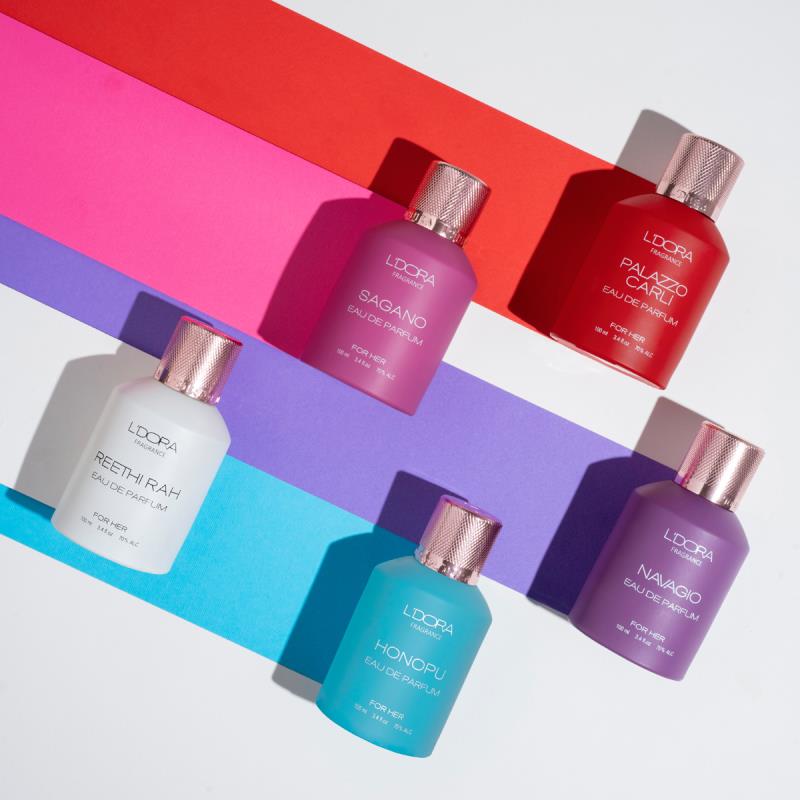 عطرهای لدورا فرگرنس که در حجم 100 میلیلیتر تولید و به بازار عرضه شده، کالکشن جدیدی با کیفیت مطلوب و ماندگاری بالا است که این مجموعه را در طبقهبندی عطرهای نیش قرار میدهد. در ادوپرفیومهای لدورا فرگرنس 100 میل اسانسهای طبیعی متمایز و منحصر بهفرد فرانسوی، اسپانیایی و ایتالیایی و ... بهکار رفته است. این عطرها با توجه به سلایق مختلف در چندین رایحه زنانه، مردانه و اسپرت با طراحی جدید، متفاوت و بستهبندی شیک عرضه شده است.